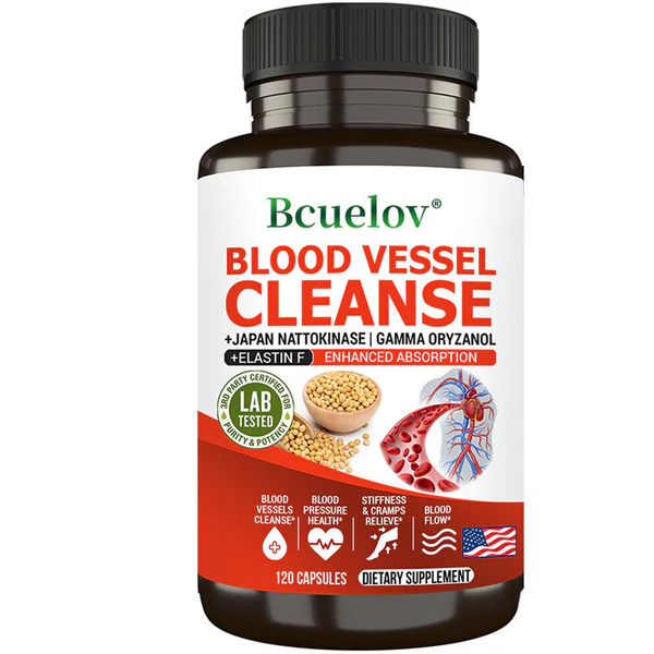 Support your cardiovascular health naturally with Bcuelov® Blood Vessel Cleanse, a powerful supplement designed to cleanse blood vessels, promote circulation, and support heart health with a unique blend of Japan Nattokinase, Elastin F, and Gamma Oryzanol.