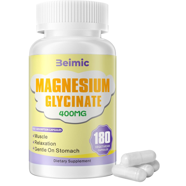 Beimic Magnesium Glycinate 400mg – Gentle on Stomach (180 Vegetarian Capsules)