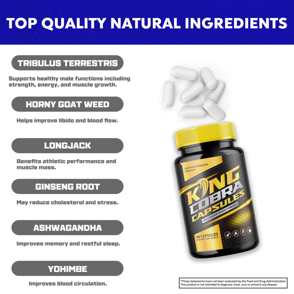 King Cobra Capsules Male Enhancement In Pakistan is a powerful natural supplement available at MyDarazStore.com. Designed to enhance male performance, stamina, and overall vitality, King Cobra Capsules are formulated with potent herbal ingredients like Tribulus Terrestris Extract, Horny Goat Weed Extract, Longjack Extract, Ginseng Root Extract, Ashwagandha Extract, Yohimbe Extract, along with Gelatin, Rice Flour, and Magnesium Stearate.