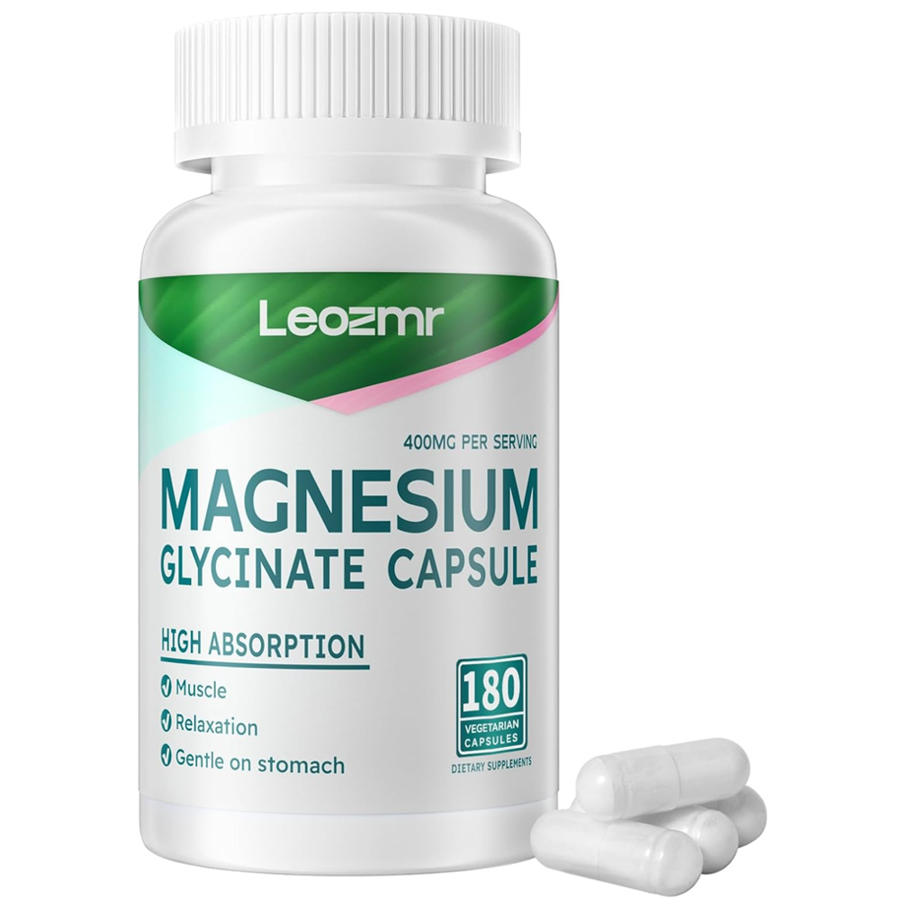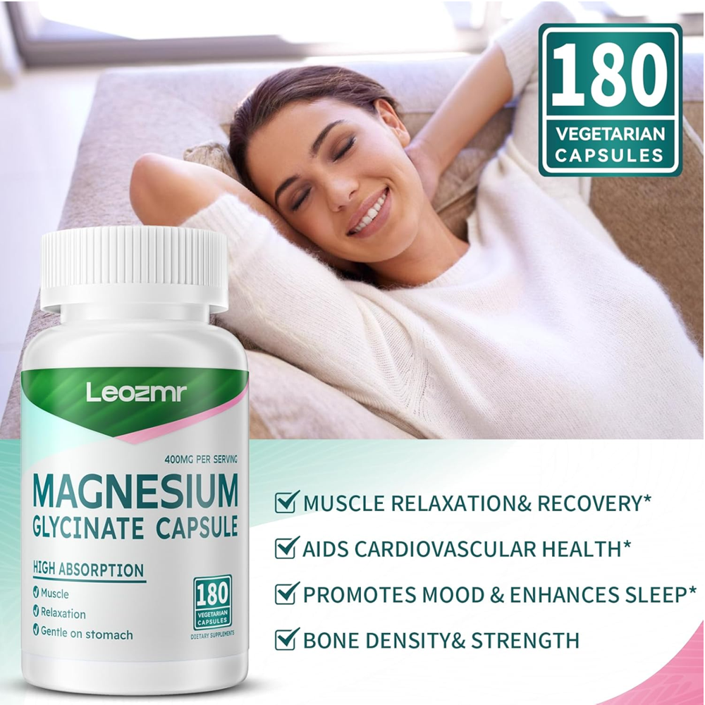 Leozmr Magnesium Glycinate 400mg – Muscle Relaxation (180 Vegetarian Capsules)