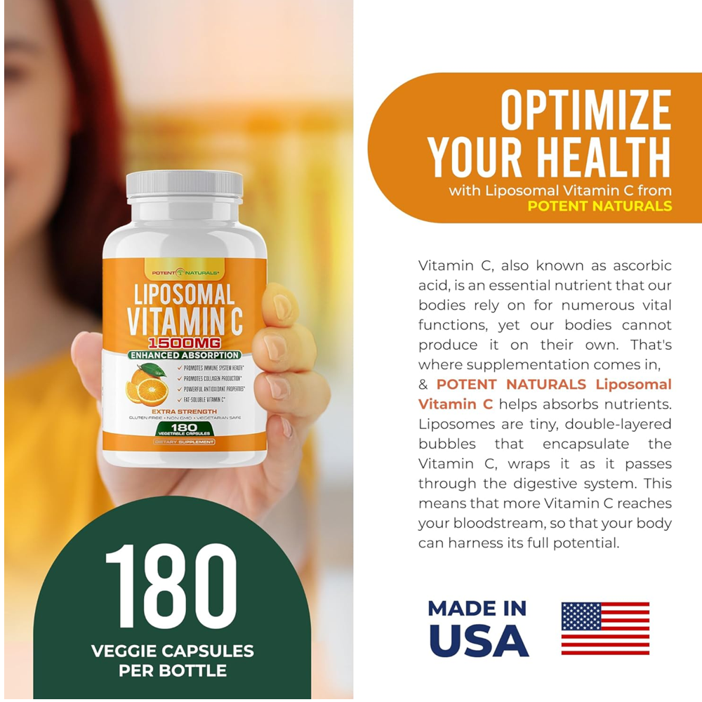 Boost your immune system, skin health, and overall wellness with potent naturals liposomal vitamin c 1500mg. This advanced liposomal formula ensures maximum absorption and bioavailability, providing superior antioxidant protection and supporting collagen production for youthful skin.