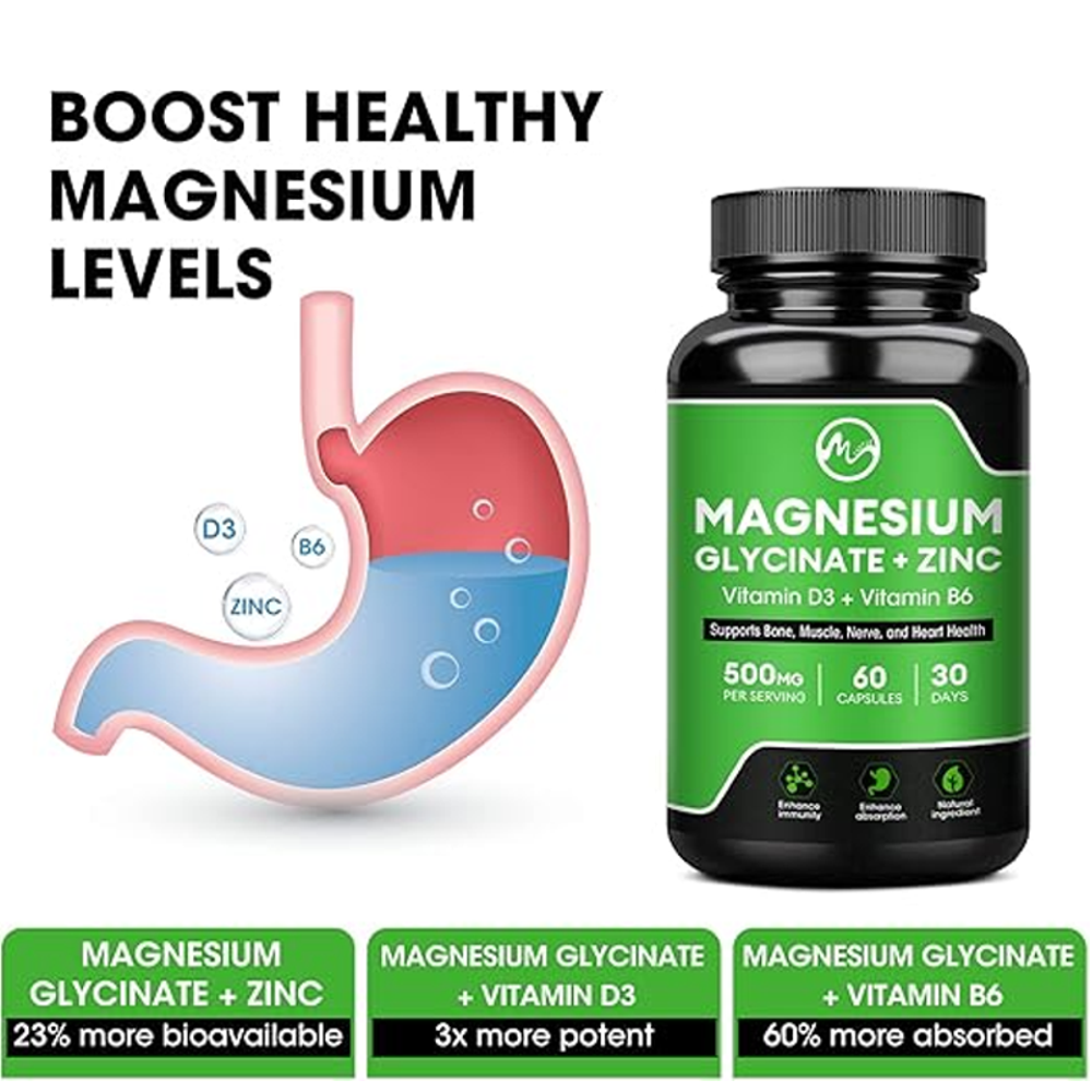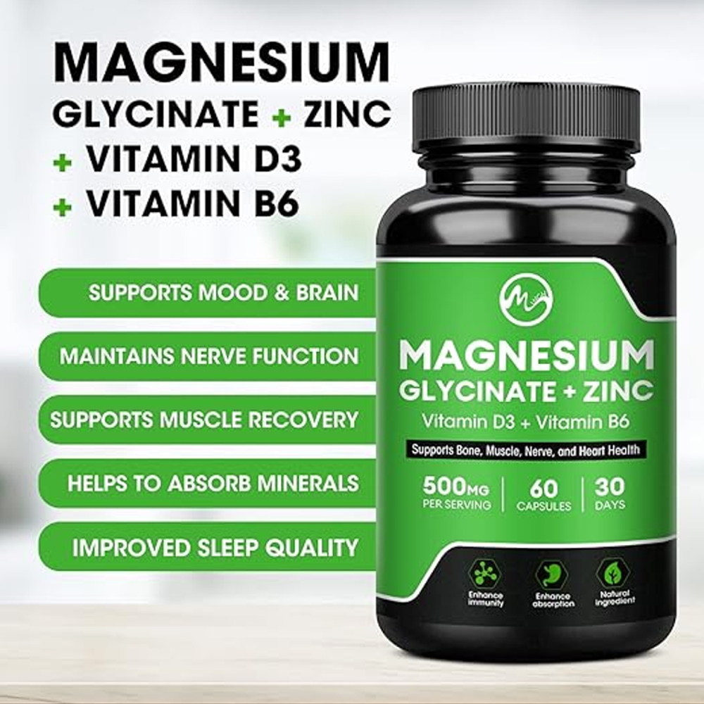 Magnesium Glycinate + Zinc with Vitamin D3 & B6 (500mg, 60 Capsules) in Pakistan