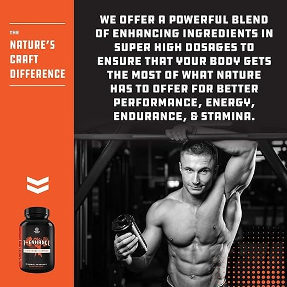 Boost your energy, stamina, and overall performance with Nature's Craft T-Enhance – Performance Support. This advanced formula is designed for men seeking natural enhancement, muscle growth, and vitality. With a powerful blend of Horny Goat Weed, Maca Root, and Tribulus Terrestris, this supplement helps optimize testosterone levels, improve endurance, and promote overall well-being. Whether you need pre-workout support or daily vitality, Nature's Craft T-Enhance is the ideal choice.