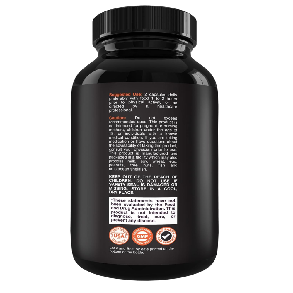 Suggested Dosage: Take two (2) capsules daily, preferably with food 1 to 2 hours before physical activity, or as directed by a healthcare professional.