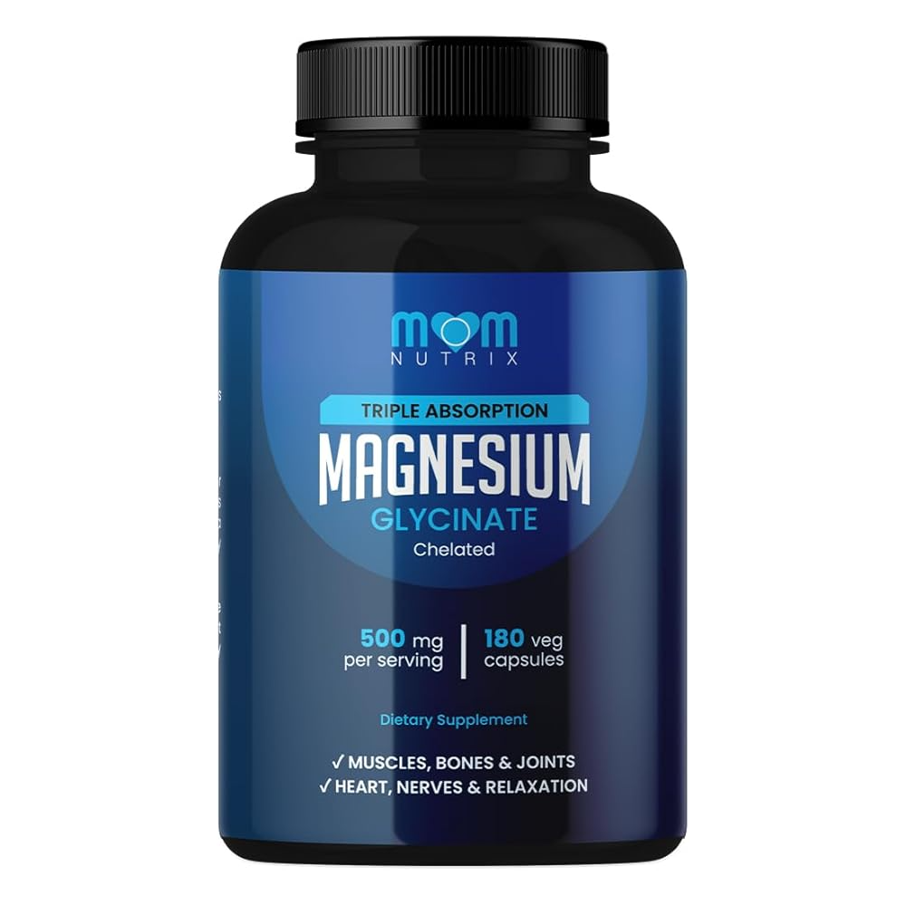 MOM NUTRIX Magnesium Glycinate – 500mg | 180 Veg Capsules