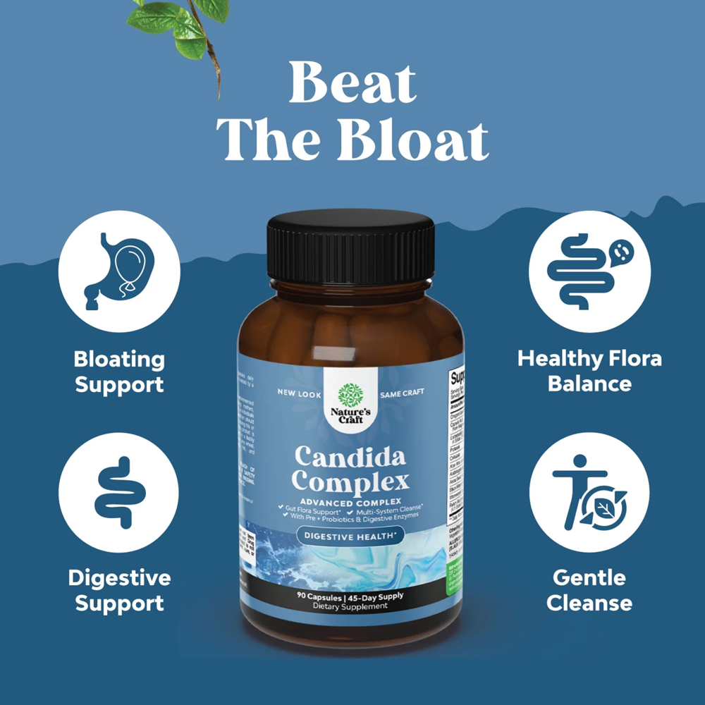 Restore gut balance naturally with Natures Craft Candida Complex Capsules—an herbal supplement designed to cleanse candida albicans, support digestive health, and boost the immune system.