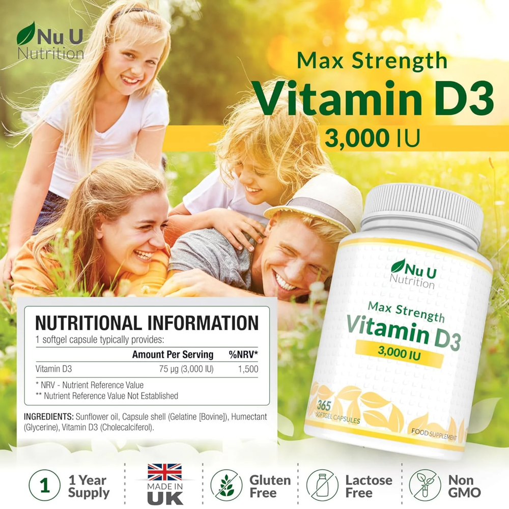 Nu U Nutrition Vitamin D3 3,000 IU Capsules