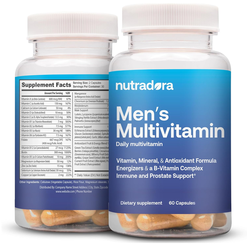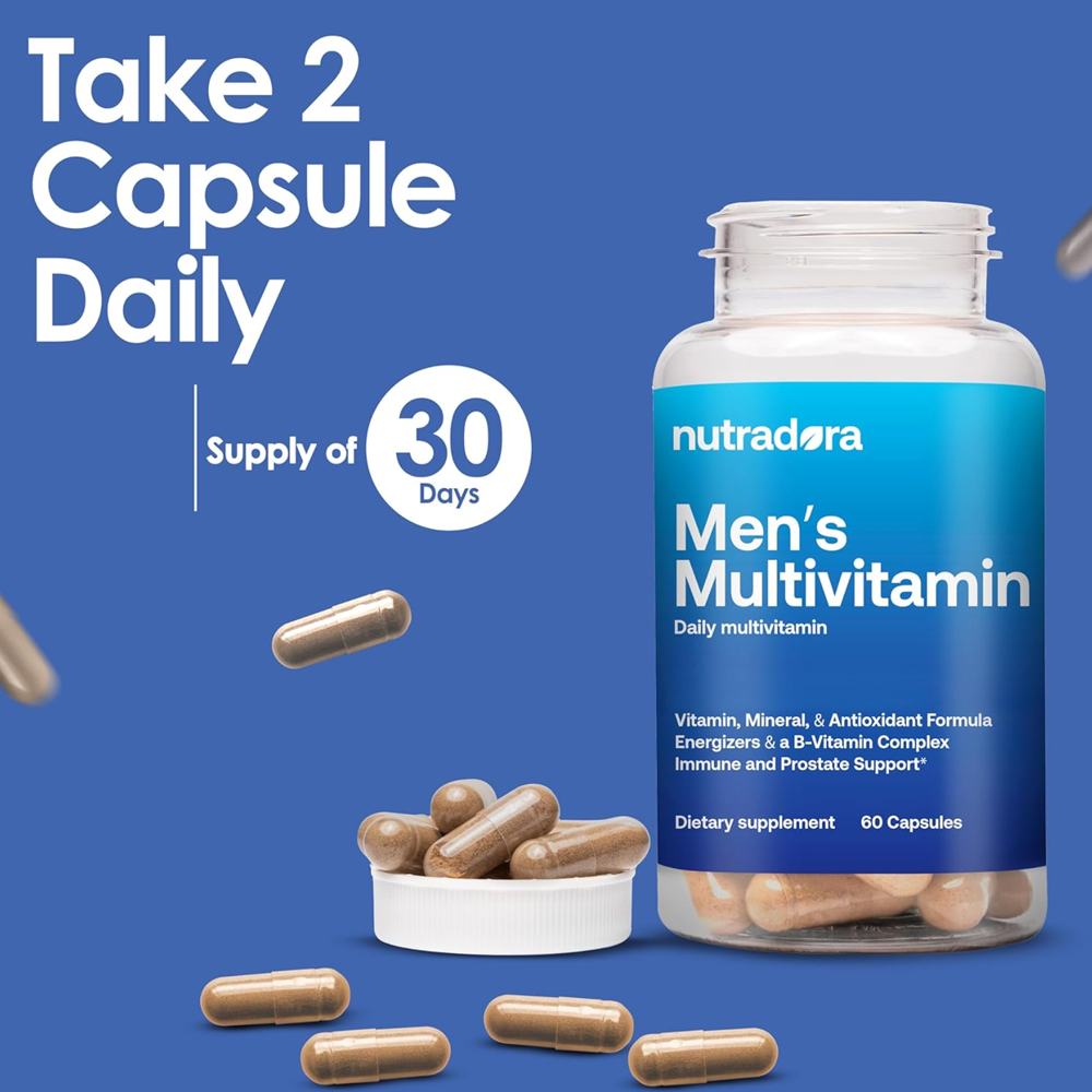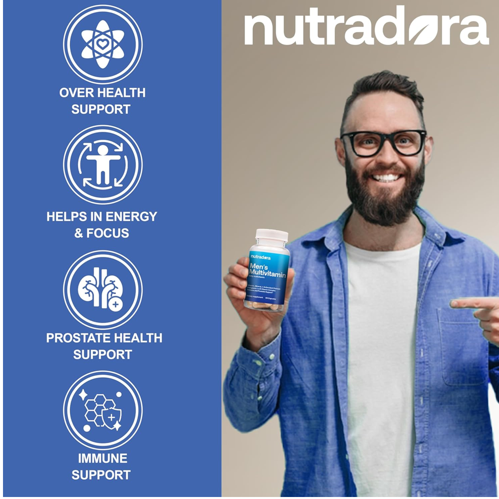 Give your body the essential nutrients it needs with Nutradora Men's Multivitamin Supplement, a complete daily formula designed to support men's overall health, vitality, and performance. Packed with essential vitamins, minerals, and antioxidants, this supplement helps boost energy, focus, and immunity, ensuring you stay active and healthy every day.