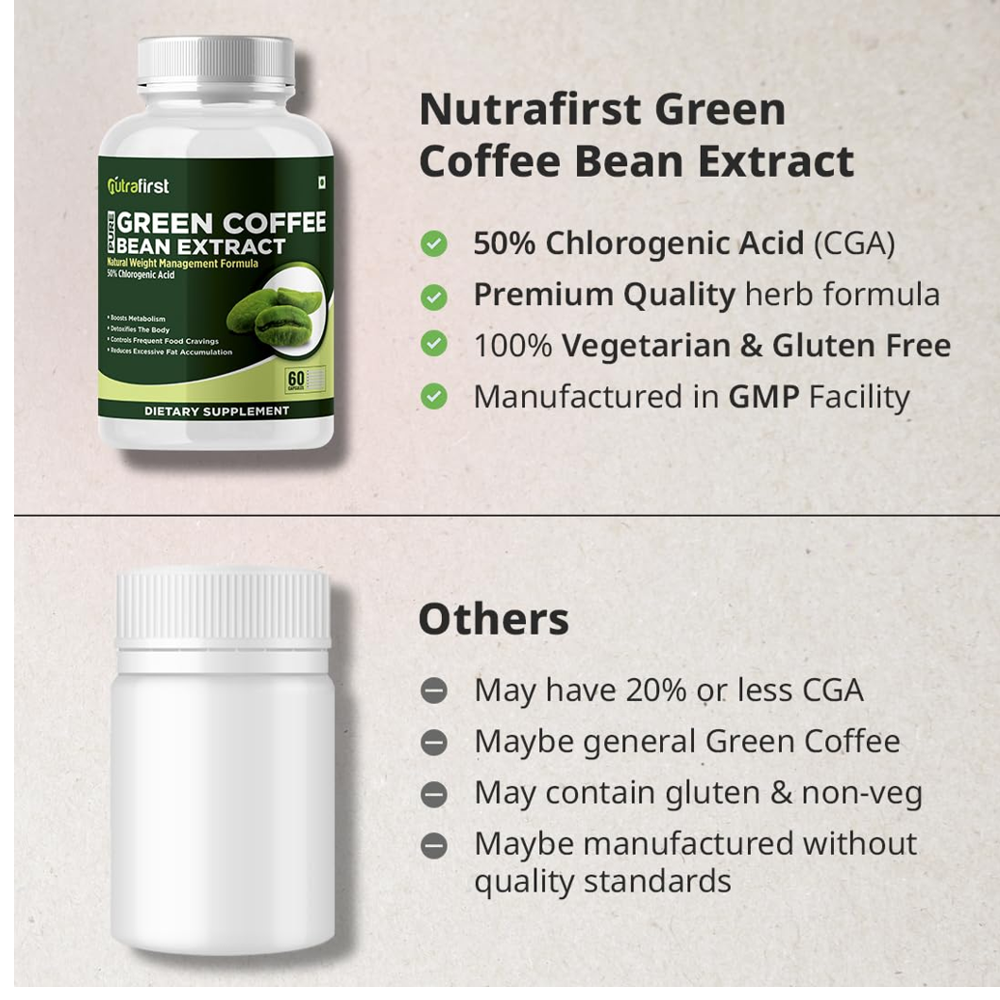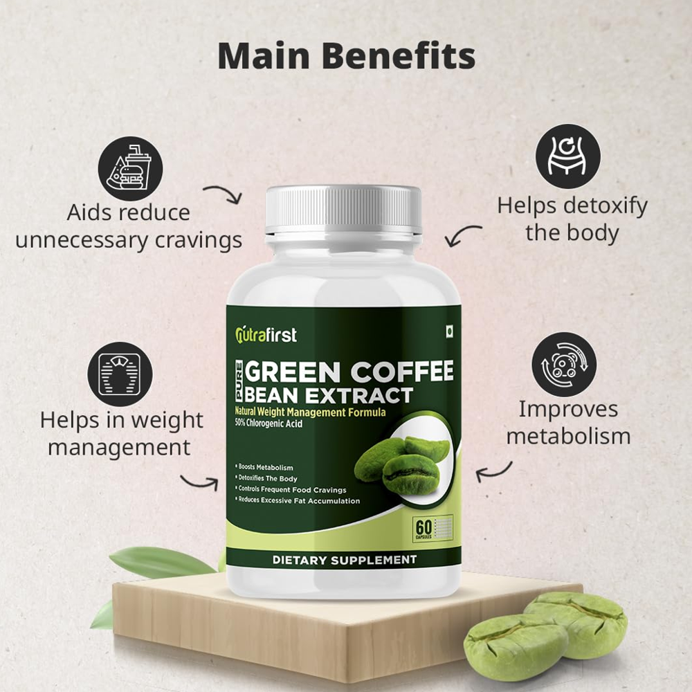Achieve your weight loss goals naturally with nutrafirst green coffee bean extract capsules, a premium supplement made from 100% unroasted green coffee beans. Packed with chlorogenic acid, antioxidants, and essential nutrients, this formula helps boost metabolism, burn fat, and support overall well-being without the jitters of regular coffee.