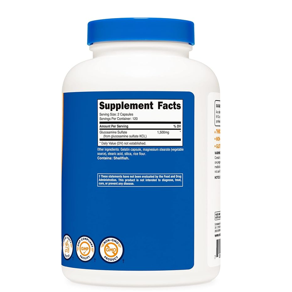 Nutricost Glucosamine Sulfate is a high-quality joint support supplement designed to promote joint flexibility, mobility, and overall cartilage health. Ideal for individuals looking to maintain an active lifestyle, this formula helps cushion joints, support movement, and reduce discomfort.