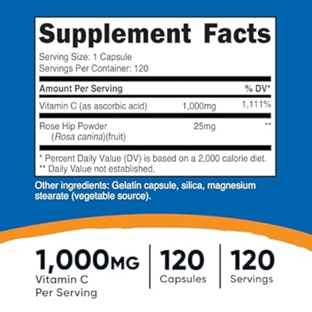 Nutricost Vitamin C 1000mg with Rose Hips – 120 Capsules in Pakistan