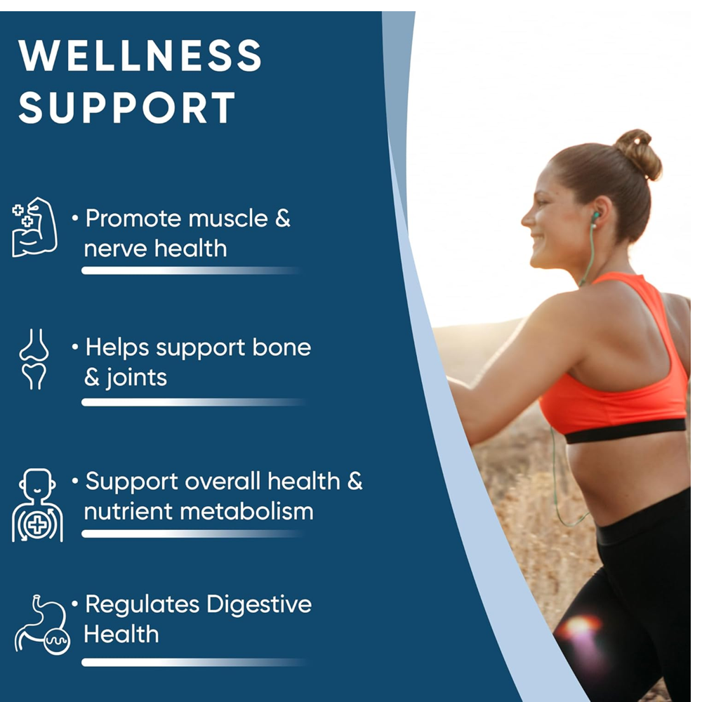 Heart Health: Helps maintain a steady heartbeat and supports cardiovascular function.