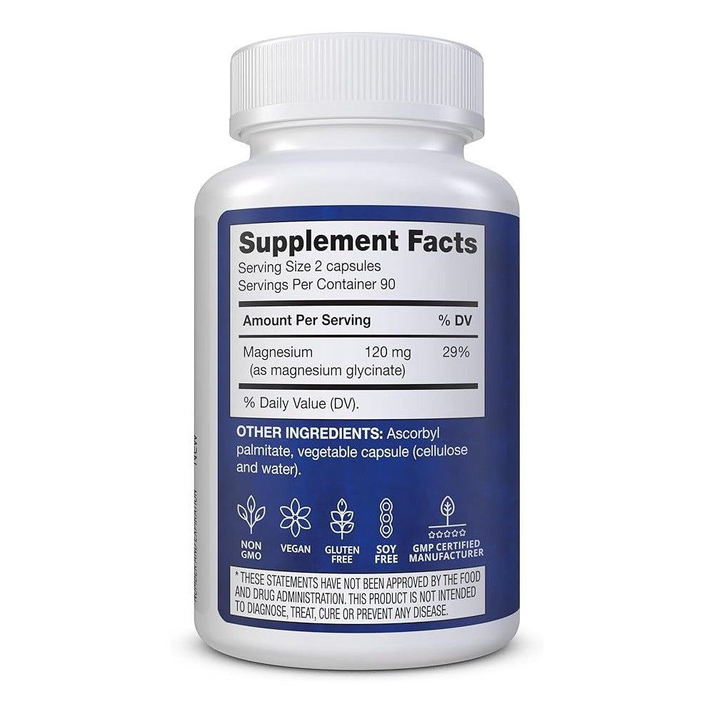 - Magnesium (from Magnesium Glycinate Chelate) – 120mg according to capsule