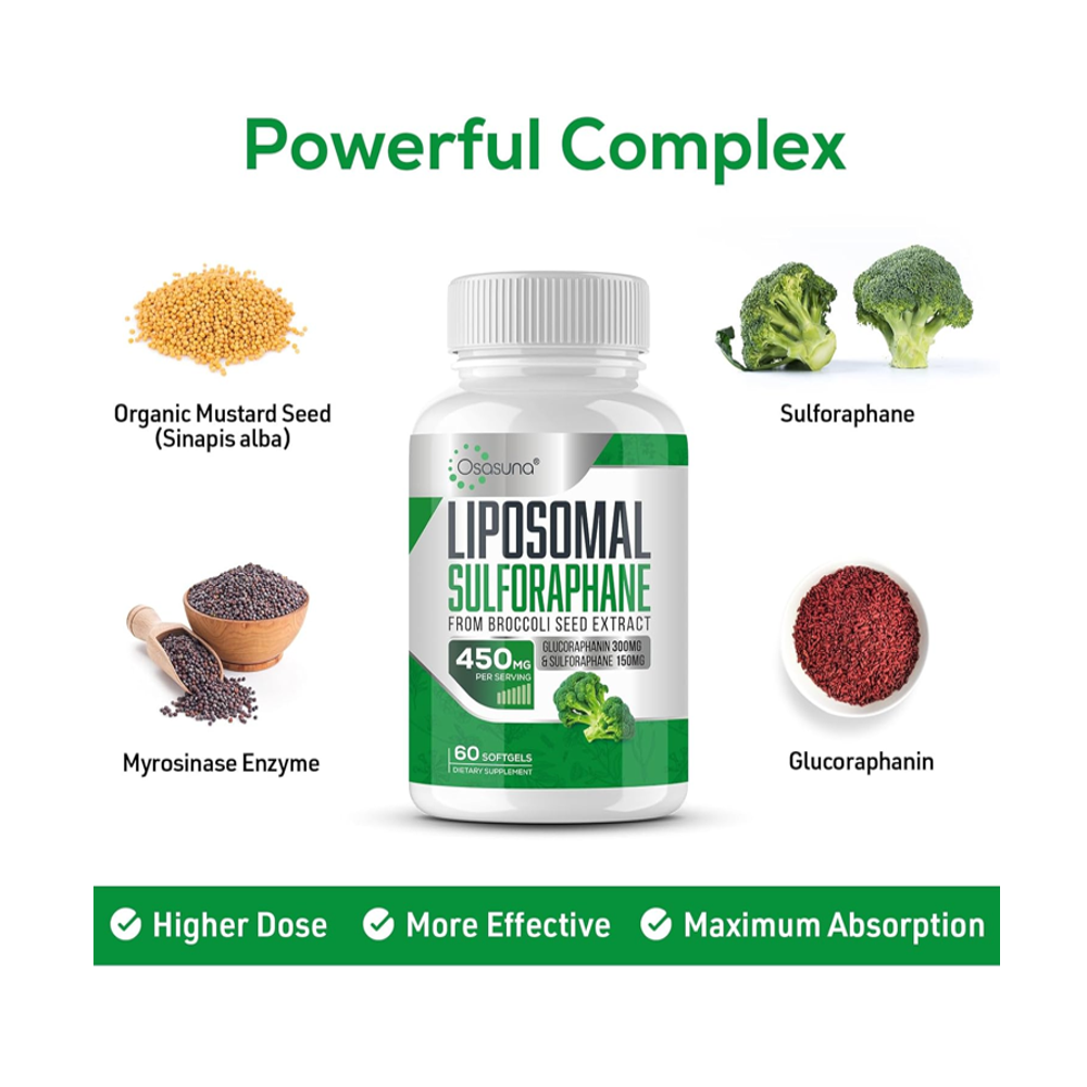Osasuna Liposomal Sulforaphane Softgels offer a effective dose of sulforaphane, a effective antioxidant derived from broccoli sprouts. Formulated with superior liposomal technology, those softgels make certain most absorption and bioavailability, assisting detoxification, cell health, and ordinary well-being.
