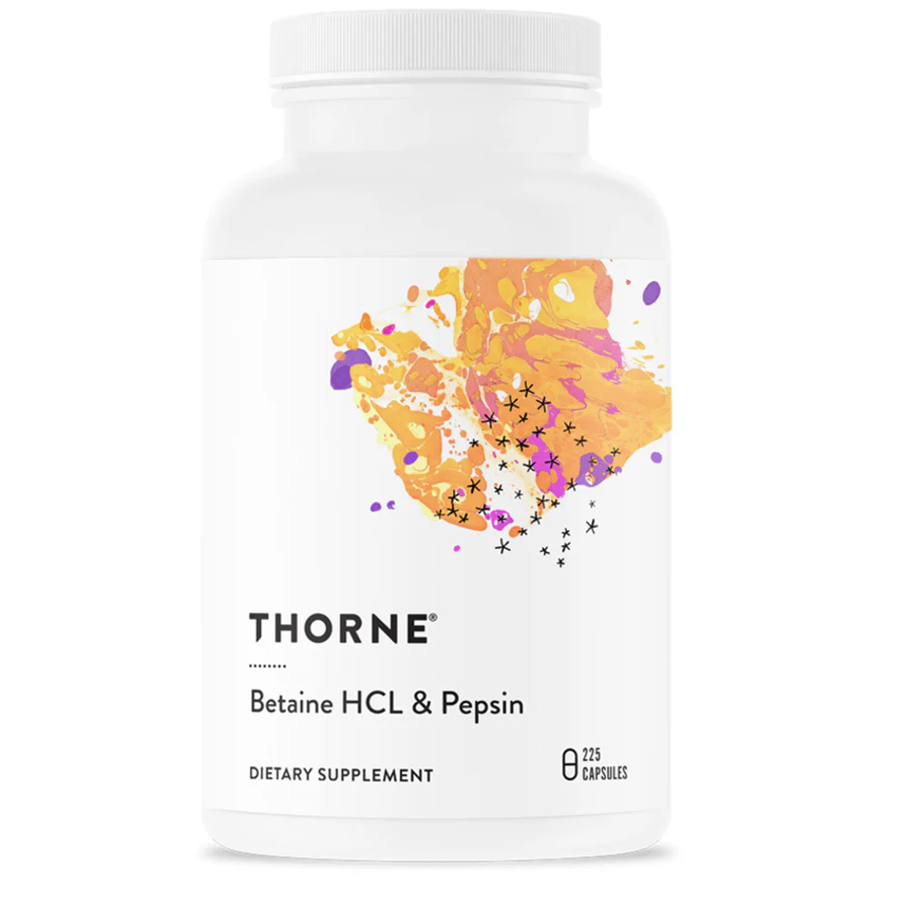 Thorne Betaine HCL & Pepsin is a high-quality digestive support supplement designed to enhance stomach acid production, improve protein digestion, and promote overall gut health. This powerful formula helps individuals experiencing low stomach acid (hypochlorhydria), bloating, indigestion, and nutrient absorption issues.