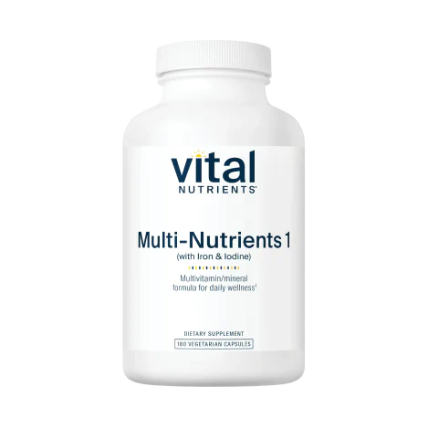 Vital Nutrients Multi-Nutrients 1 is a complete multivitamin and mineral formula designed for daily wellness support. It includes essential vitamins and minerals along with iron and iodine to help meet everyday nutritional needs. This balanced formula supports overall health, energy, and metabolic function, making it suitable for regular use as part of a healthy lifestyle.