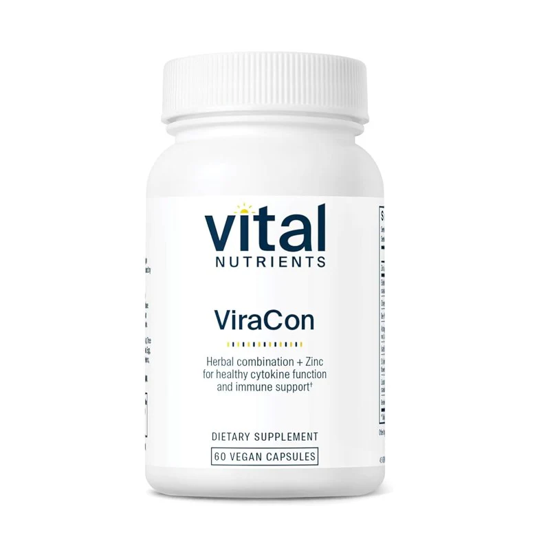Vital Nutrients ViraCon is a balanced blend of targeted herbs combined with zinc, formulated to support healthy cytokine function and overall immune system wellness. This vegan-friendly formula is designed for daily use to help maintain immune balance and resilience.